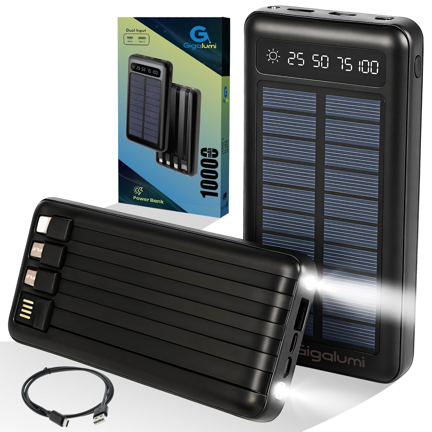 Ye 10000mAh Solar Power Bank mobile aur tablet ko charge karne ke liye use hota hai — especially jab light ya charging point available na ho 🔋