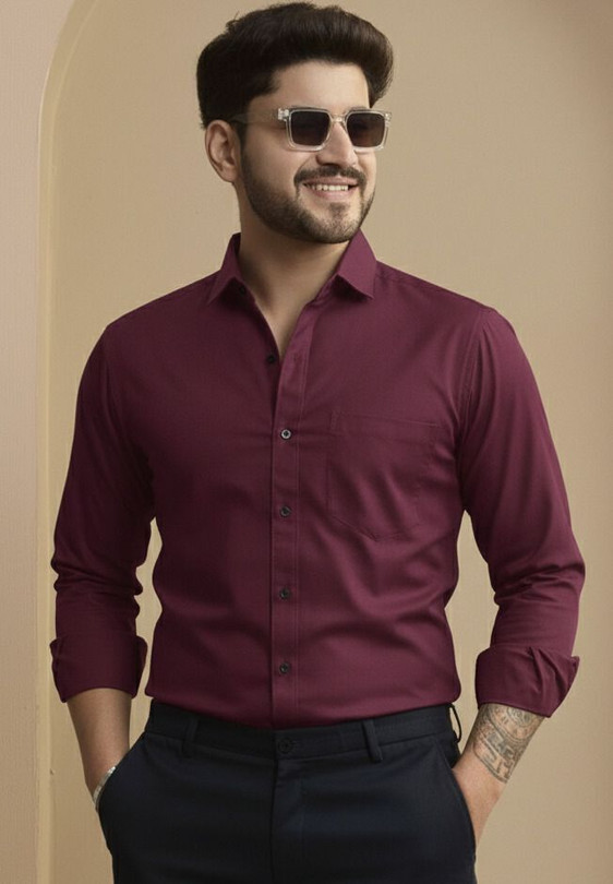 Men Slim Fit Solid Spread Collar Formal Shirt
